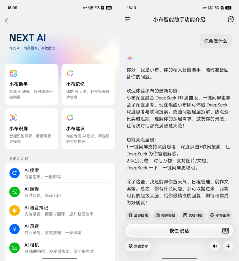 此外AI方面已经说到,相机可以使用AI进行全新的构图,小布助手也支持更多的功能,像是以往的AI搜索,AI翻译、AI语音摘记、AI录音都是支持的。