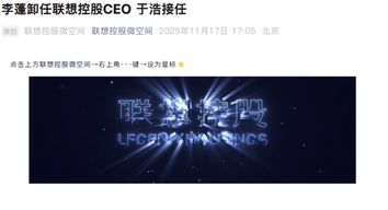 联想控股今天发布公告,宣布李蓬卸任联想控股CEO,于浩接任。公告显示,李蓬因其个人职业选择,辞任公司执行董事及首席执行官职务,并不再担任公司环境、社会及管治委员会及战略委员会成员,自2025年11月17日起生效。