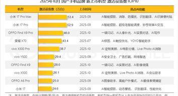 此外,荣耀X70、vivo X300 Pro、Y500、X300、OPPO Find X9、A6 Pro、小米17紧随其后。